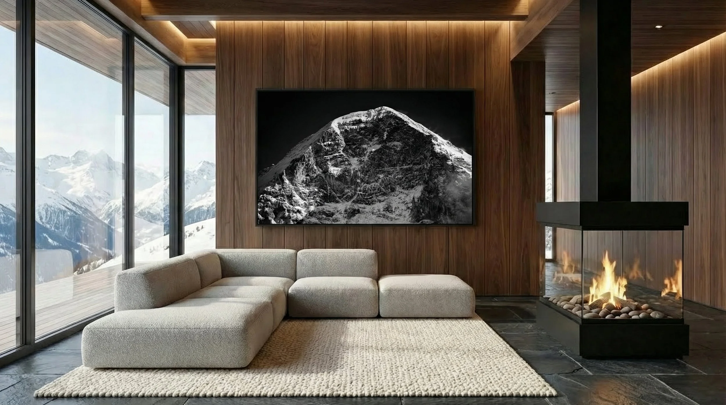 The Nordwand rises from the meadows of Grindelwald like a wall at the edge of the world — nearly 1,800 metres of dark limestone, banded with ice, holding its own weather. They called it the Mordwand, the murder wall — a name earned by sixty-four lives lost to its avalanches, rockfall and indifferent storms. In monochrome, the face becomes pure architecture: the vast sweep of the icefields, the fractured ramparts of the Ramp, and high above it all the White Spider — that spectral ice field from which frozen veins radiate like the legs of something ancient and patient. There is no colour here to soften what the mountain is. Only stone, ice, shadow, and an authority that does not ask to be admired.