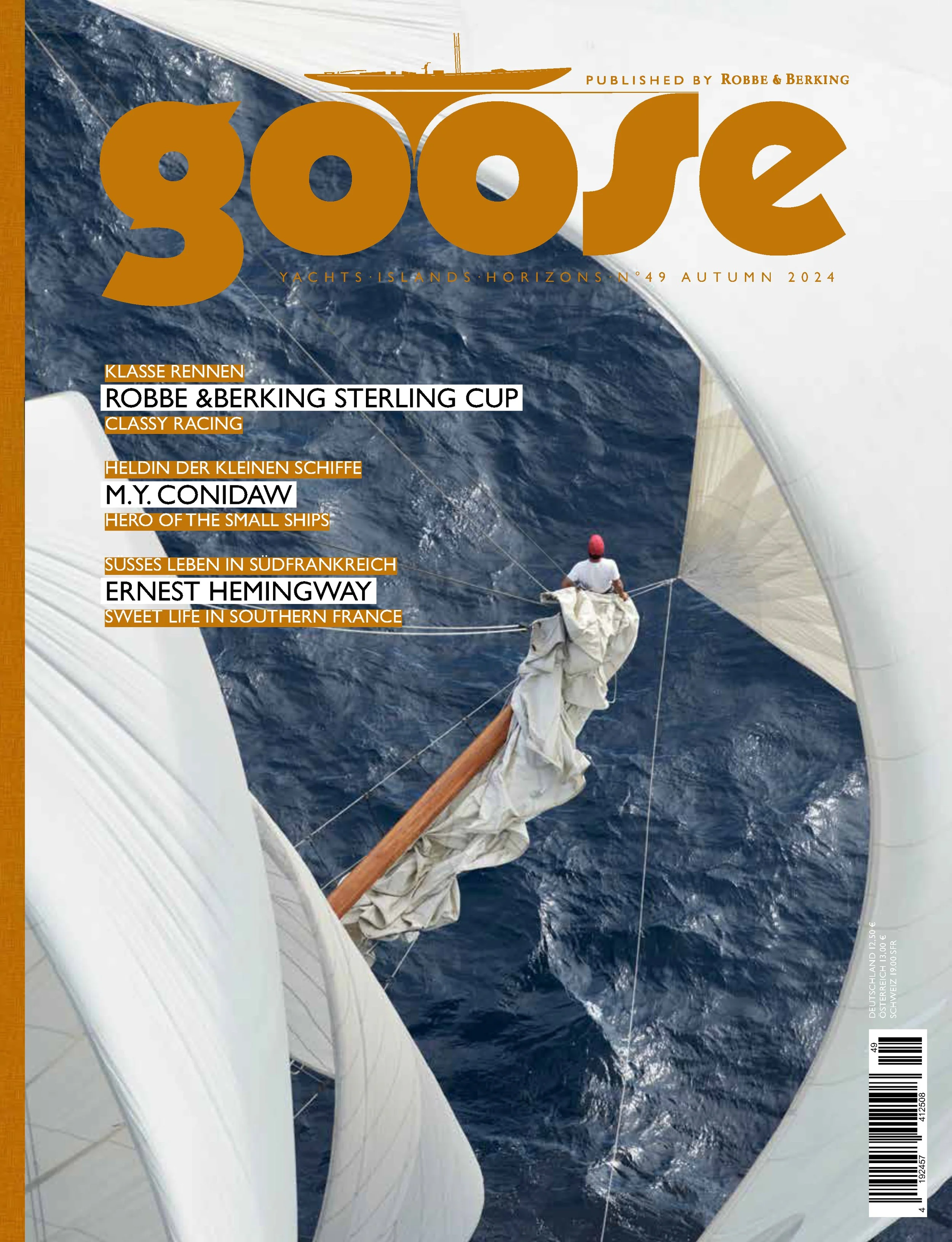 The Lady Anne crashing trough the waves jut outside the bay if Saint Tropez during the Centenary Trophy organized by the Gstaad Yacht Club during the Voiles de Saint Tropez