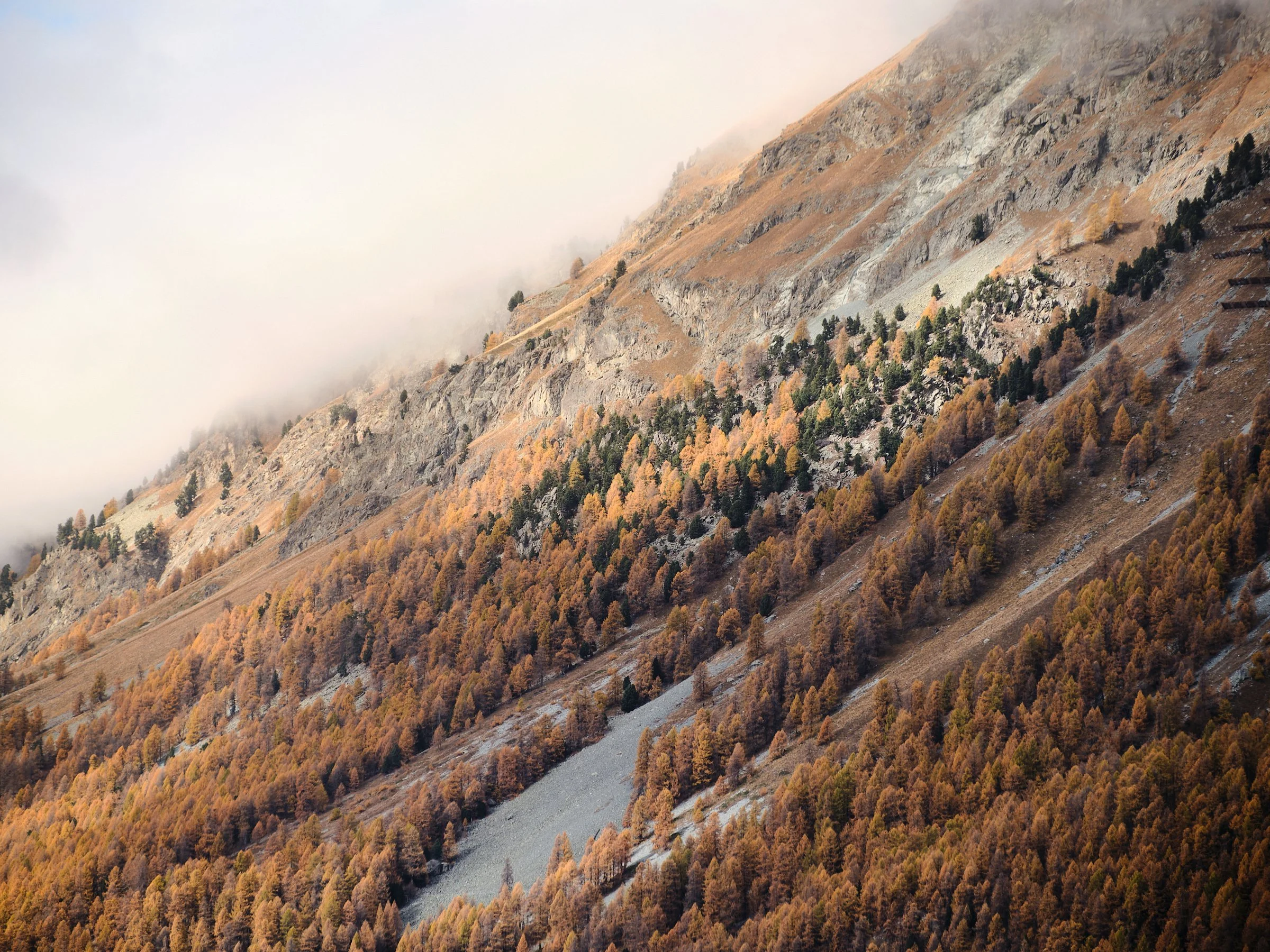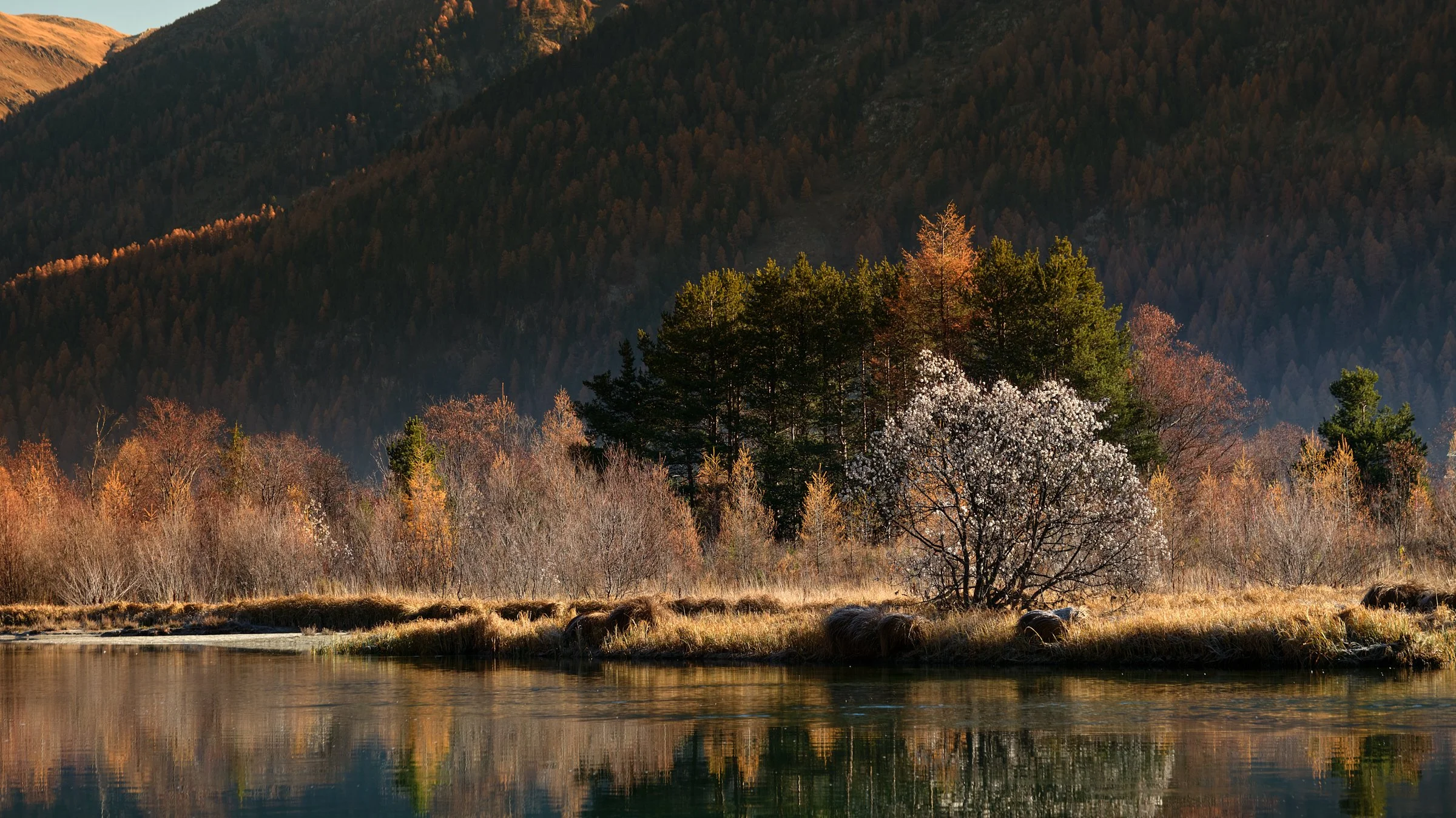 Each morning, we venture into the Engadin's most extraordinary autumn settings — the mirror-still waters of Lej da Staz at dawn, the ancient larch forests of Val Rosegg, the vast stillness of Lake Sils, and the glacial grandeur of the Diavolezza. Jürg guides you through each location with the unhurried attention of someone who has photographed these places for over a decade.